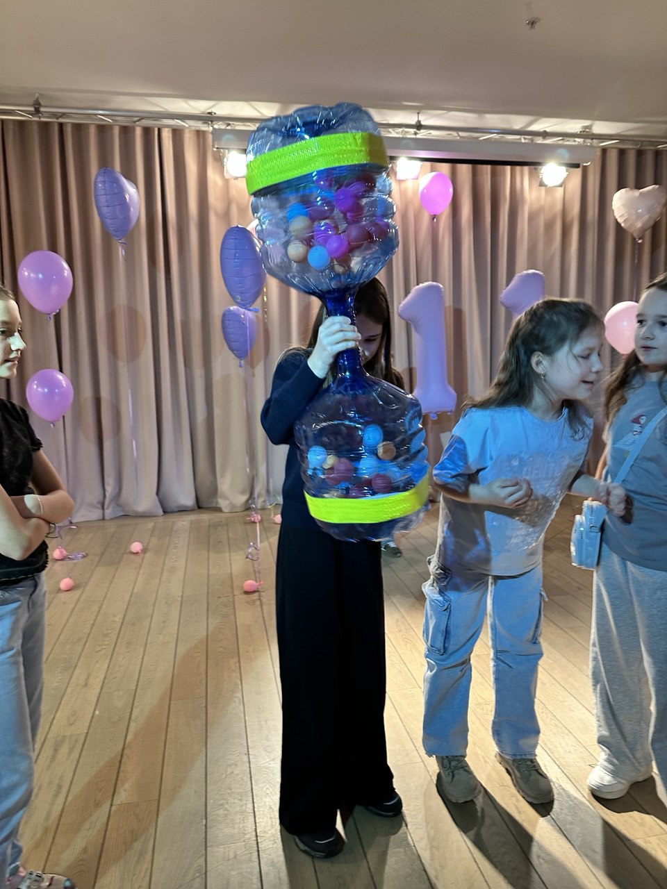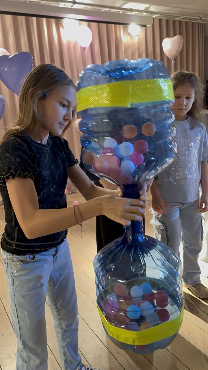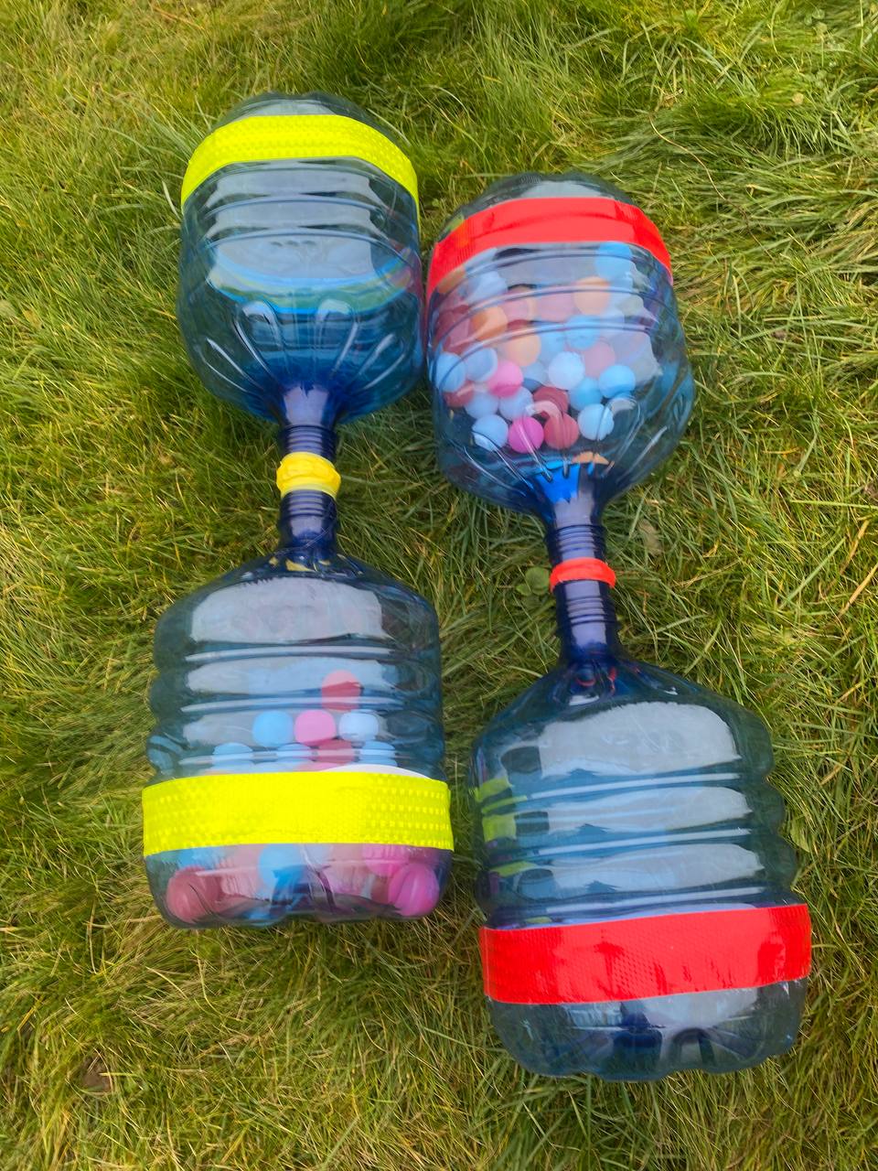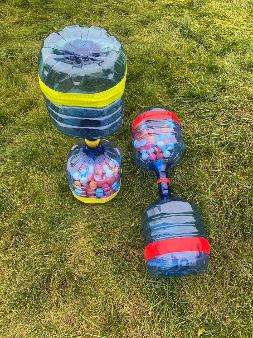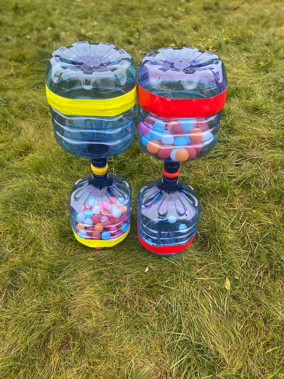Трясуны» — это веселая подвижная игра-соревнование для вечеринок и праздников, где участники двух команд трясут большие гантели с шариками пока все они не окажутся на нижнем ярусе.