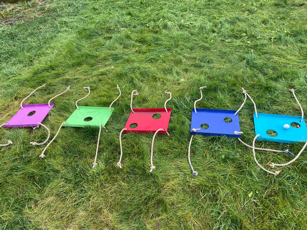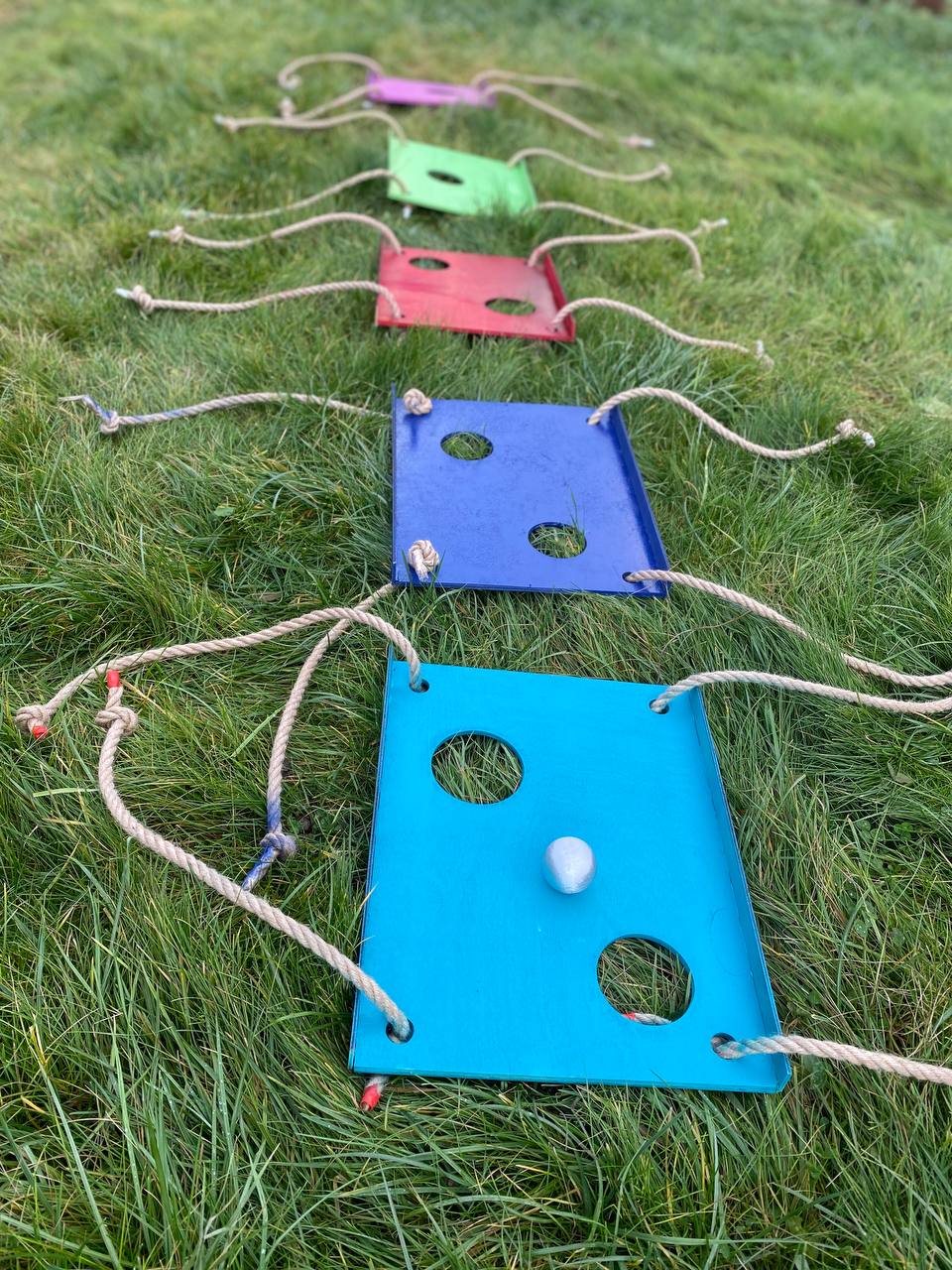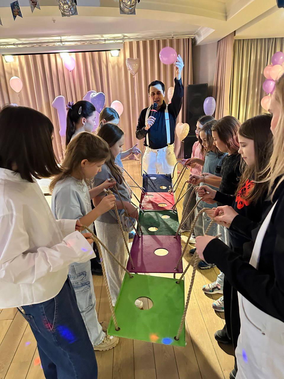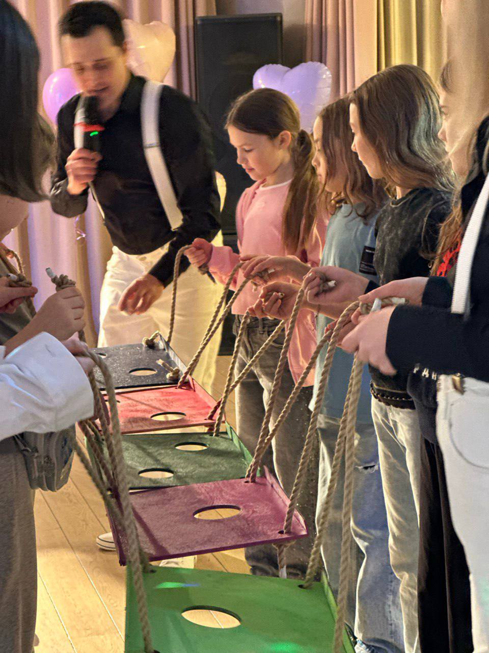 Трясуны» — это веселая подвижная игра-соревнование для вечеринок и праздников, где участники двух команд трясут большие гантели с шариками пока все они не окажутся на нижнем ярусе.