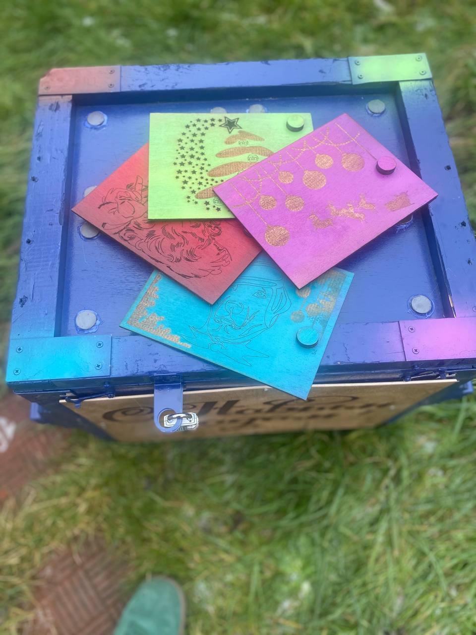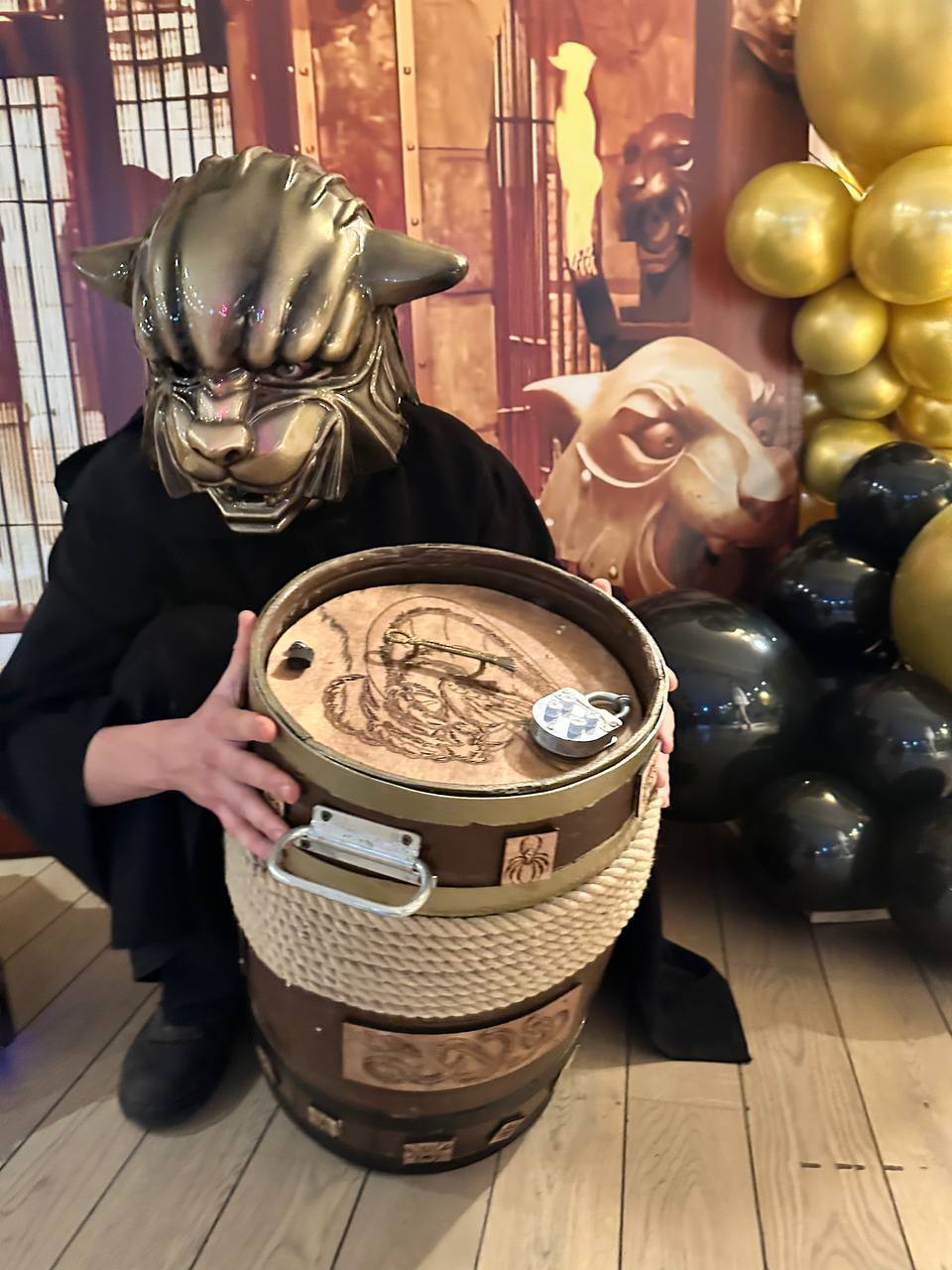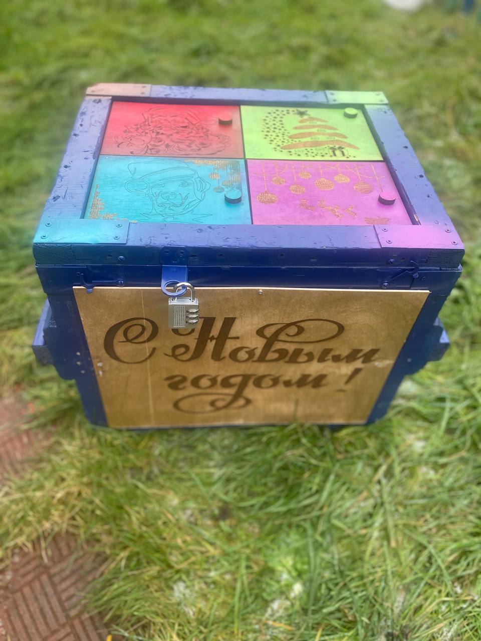 Новогодний сундук, отлично подойдет для квеста, так как есть 4 большие карточки, которые нужно собрать за испытания и тогда команда получит ключ от сундука